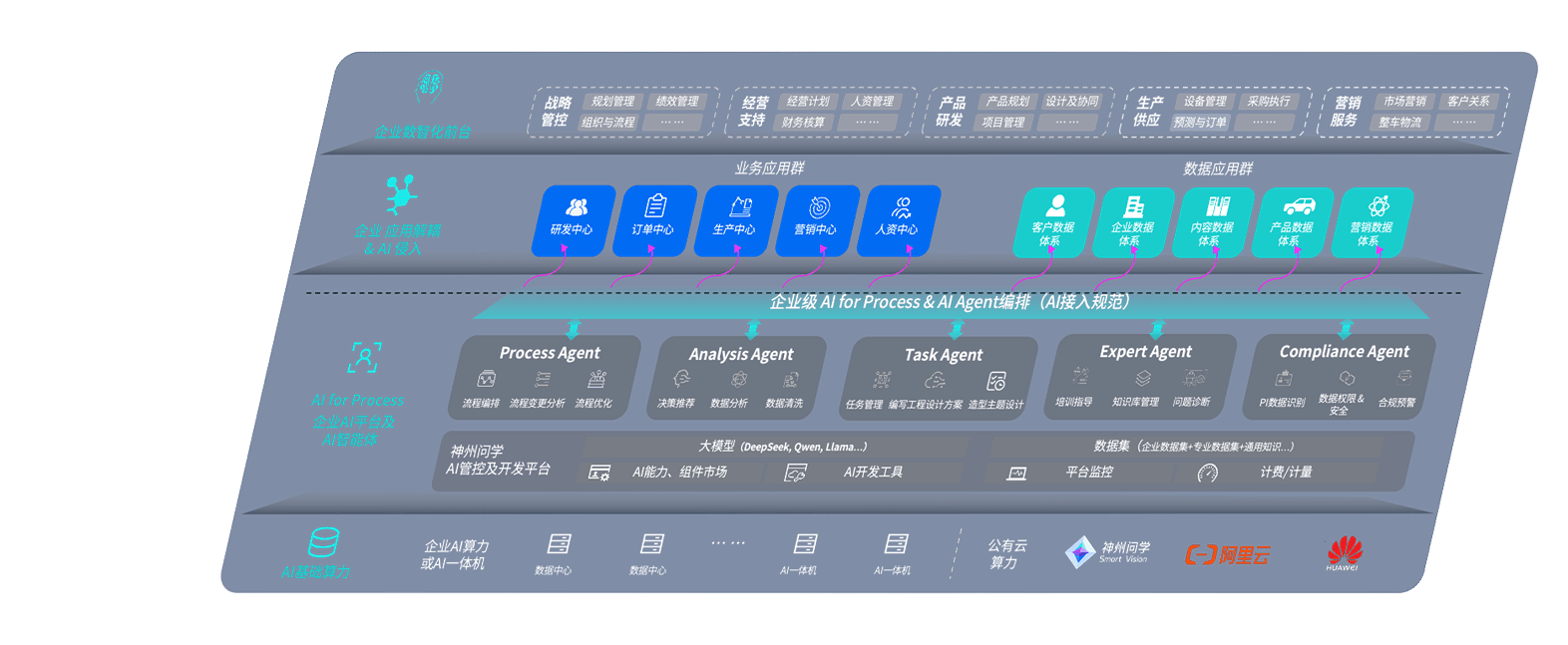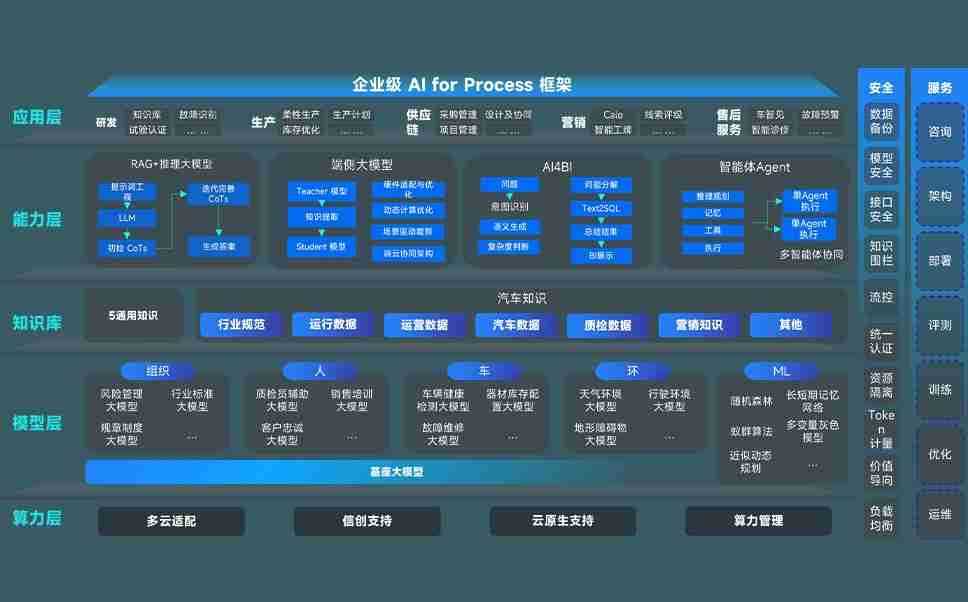 端到端的一站式AI工作空间深度融合了从企业战略规划到日常经营的全流程业务板块,,,,定向解决车企内部领域多、、、部门多、、链条长、、场景碎片化等难题,,支持车企快速构建以AI为核心的生产力写作体系,,,实现任务执行与AI能力的无缝集成与交互